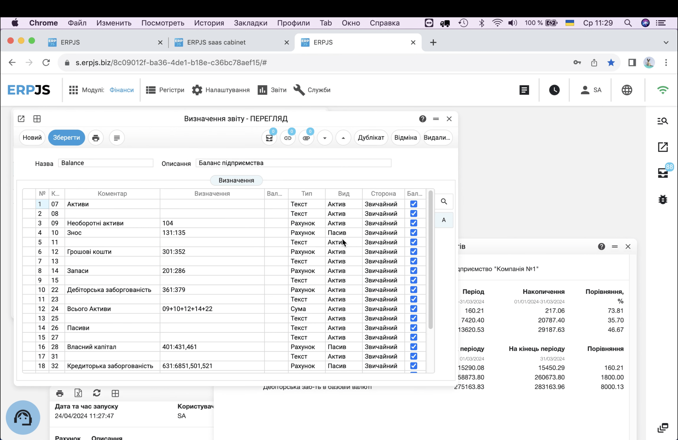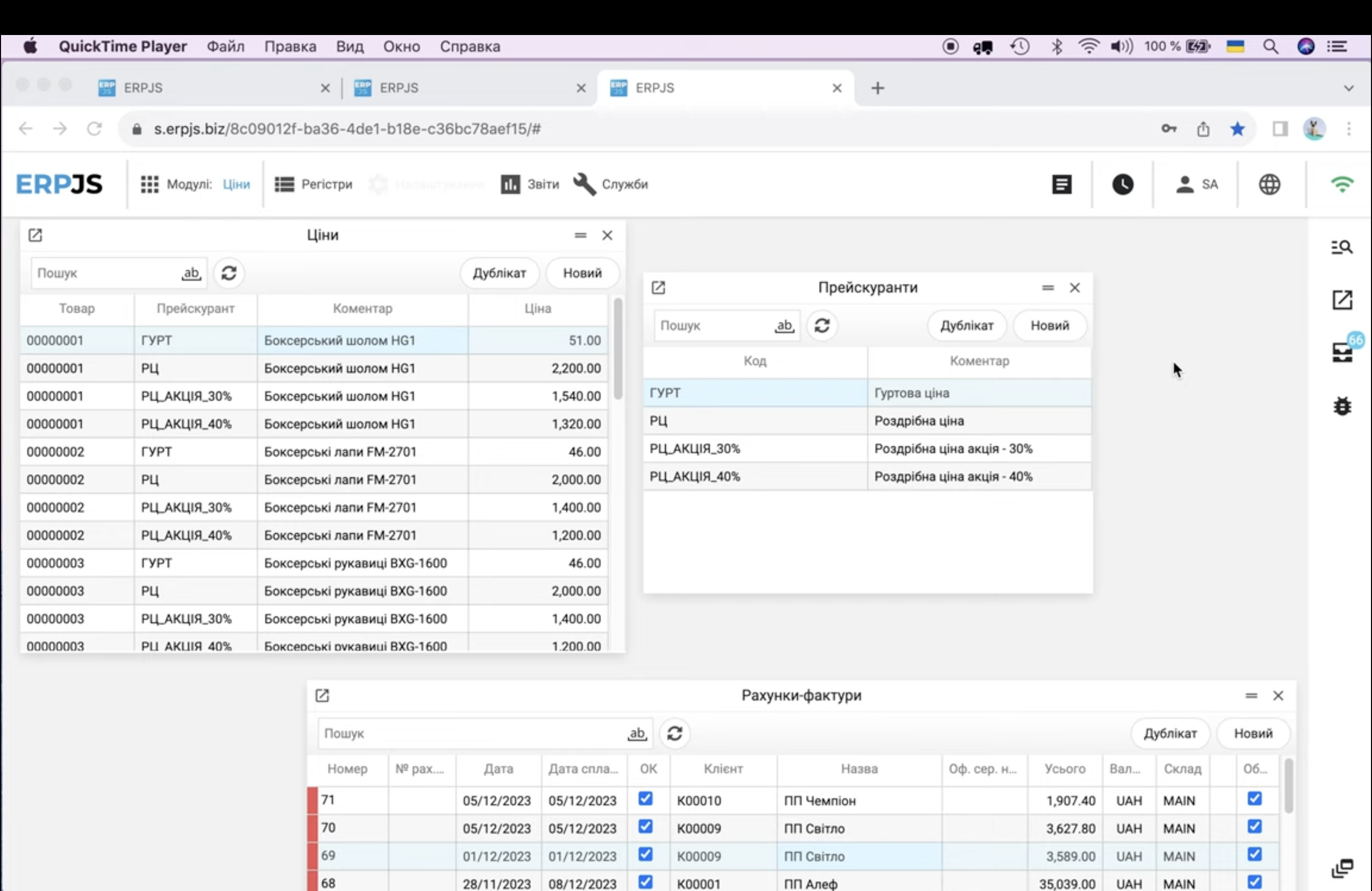 ERPJS пропонує повнофункціональне ERP-рішення, що включає управління фінансами, процесом закупівлі і продажу, ціноутворенням, керування складом, виробництвом, сервісним центром та проектами.
