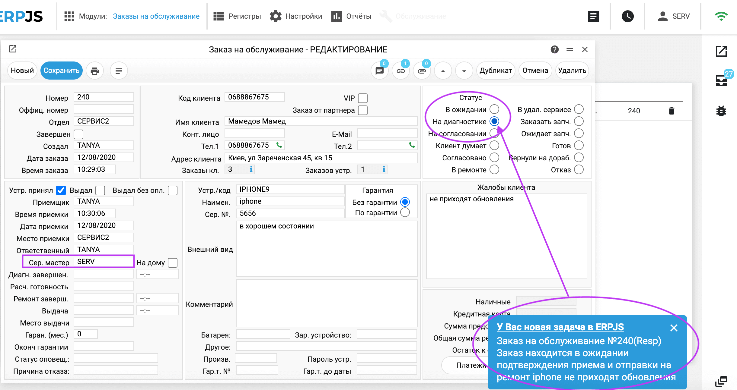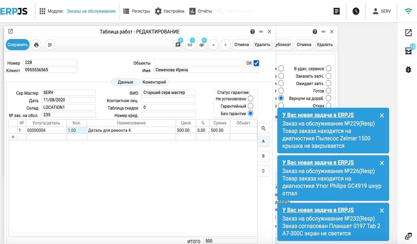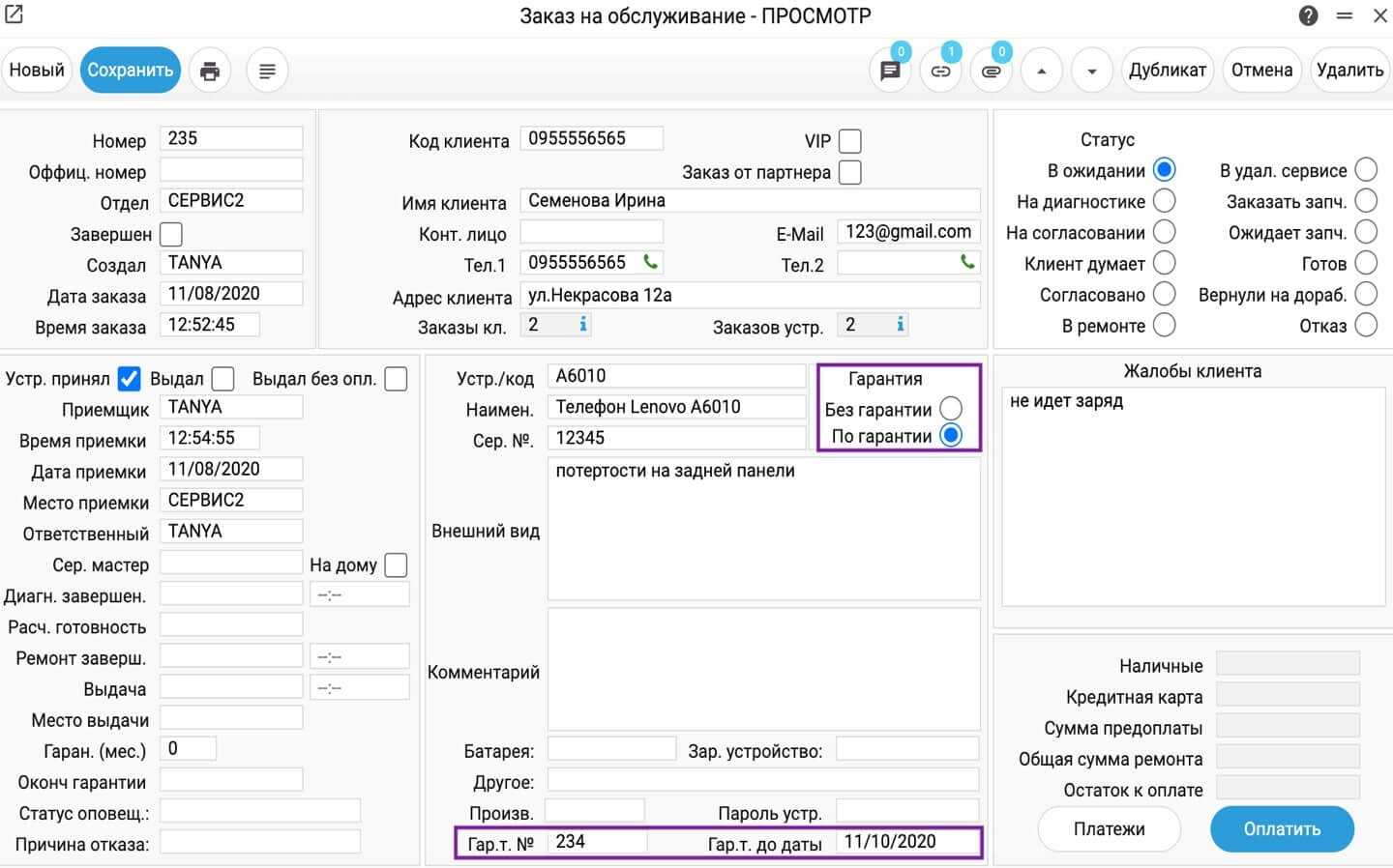 Сповіщати клієнтів про стан ремонту за допомогою SMS-повідомлень. Зберігати історію роботи з клієнтом для реалізації різних програм лояльності.